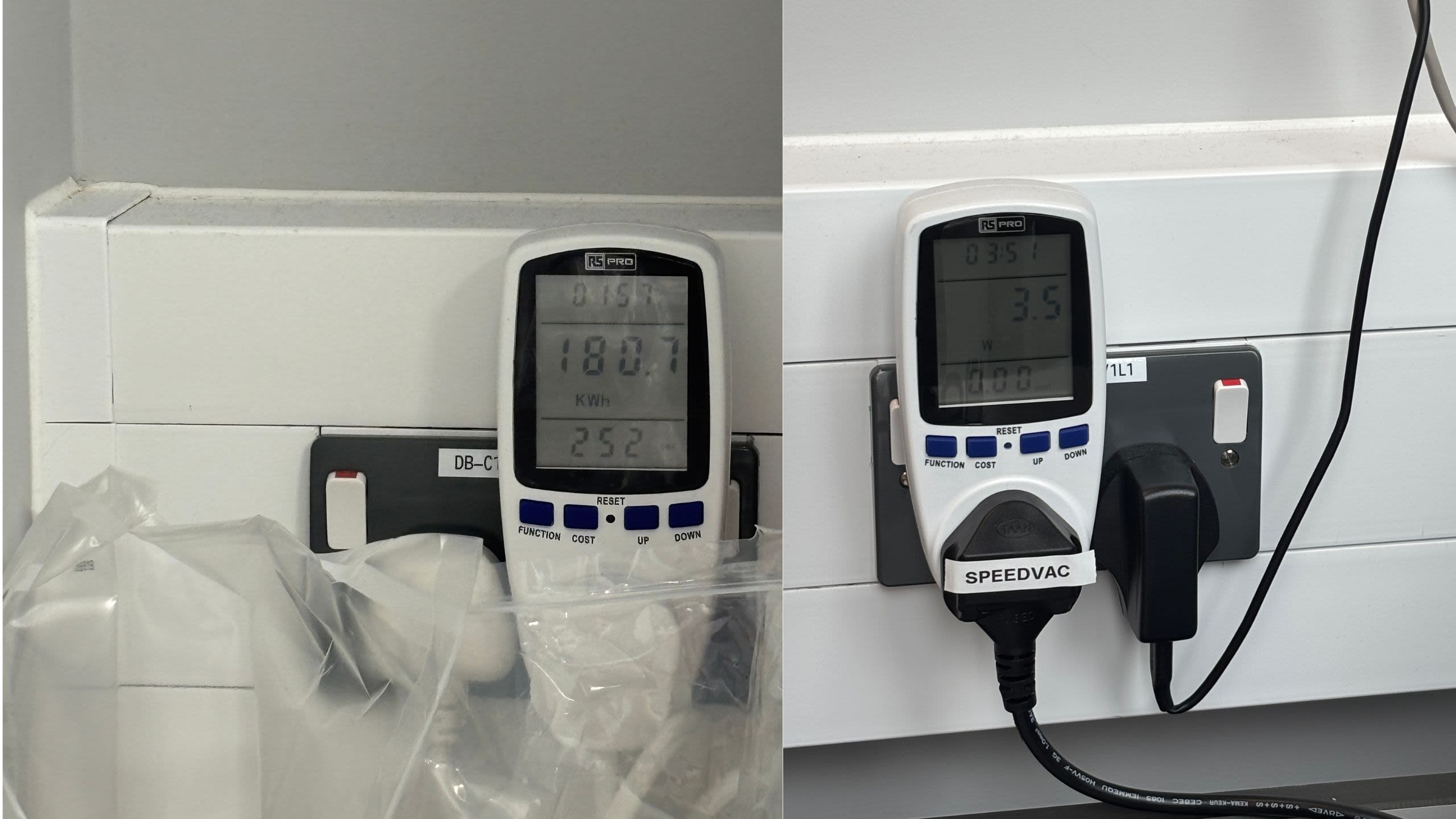 Eyad wanted to identify which instruments are more sustainable. Labs' electrical consumption readers mean the team can follow exactly how much energy is being consuming by a particular instrument when it's running. The data given by the readers means that Eyad can tell the team if something has been left overnight and how much money it has cost the lab.